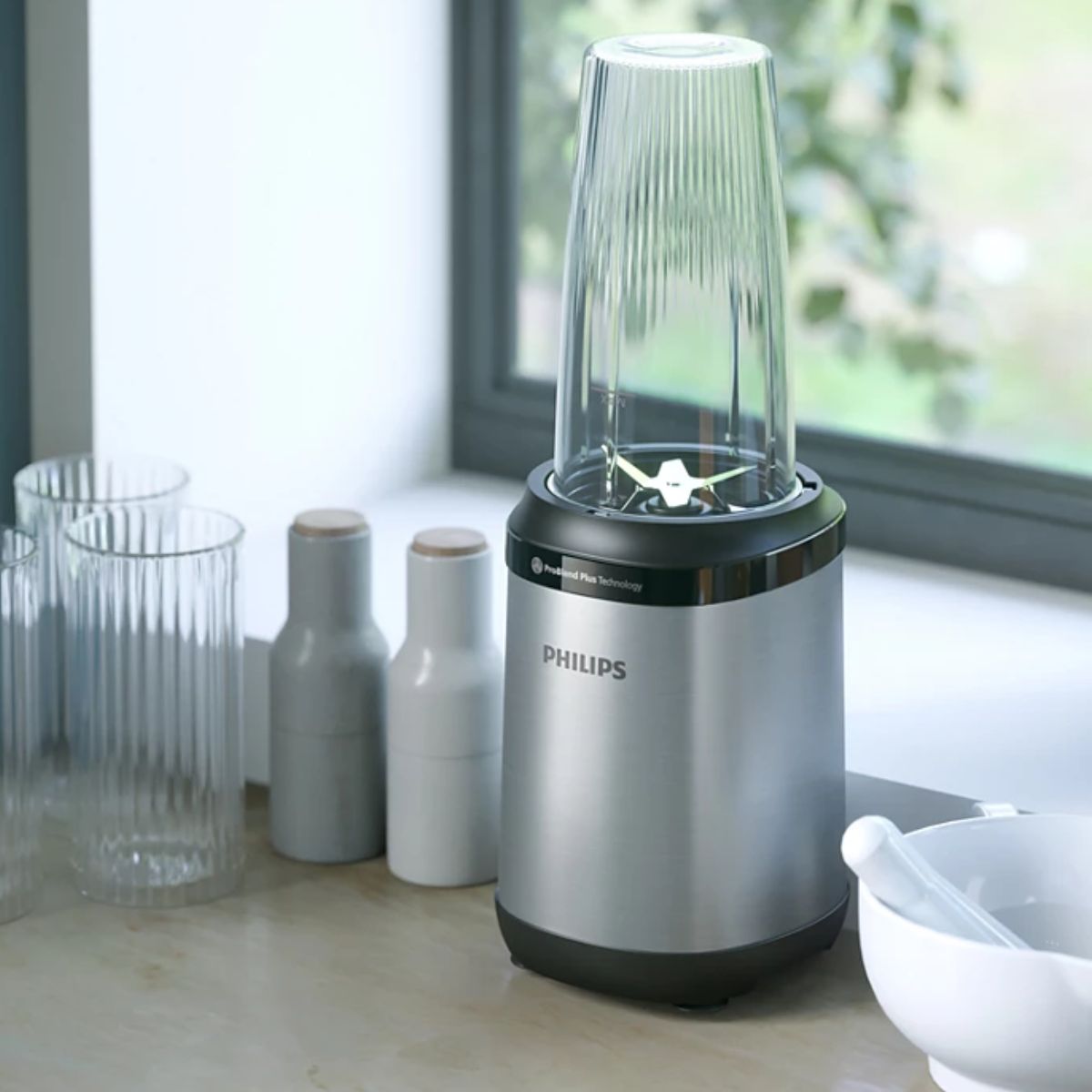 Tehnologija ProBlend Plus: Kombinacija snažnog motora, oštrih rezača i vrča za blendanje omogućuje savršene rezultate blendanja, čak i kada koristite tvrde sastojke poput kockica leda, orašastih plodova ili smrznutog voća.