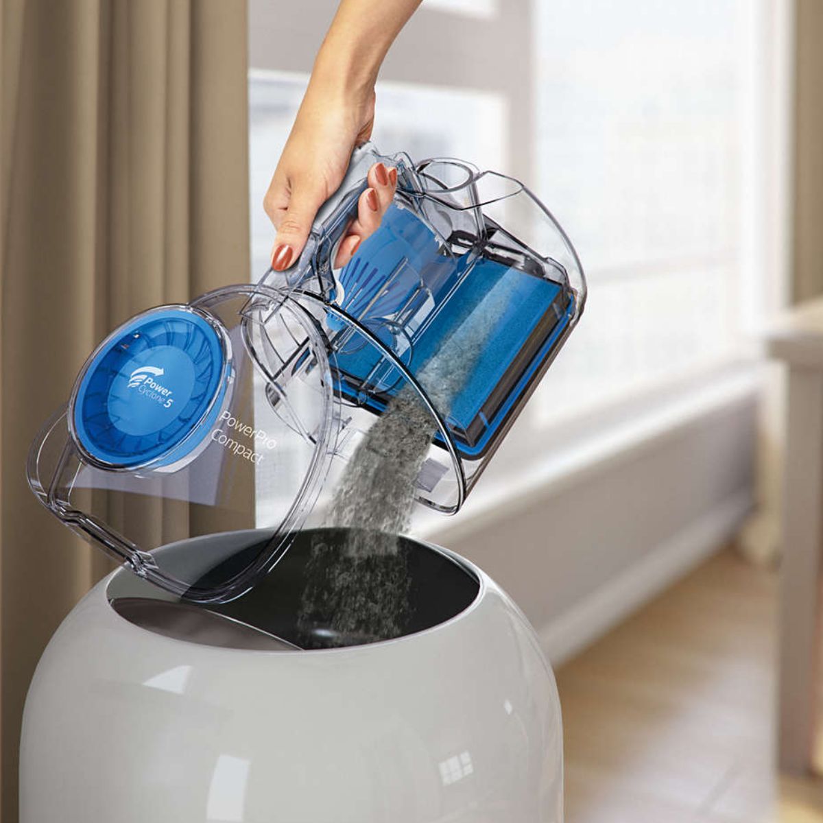 - Tehnologija PowerCyclone 5: Ova tehnologija ubrzava protok zraka unutar komore, odvajajući prašinu iz zraka i održavajući visoke performanse i snažnu usisnu snagu na duže vrijeme.