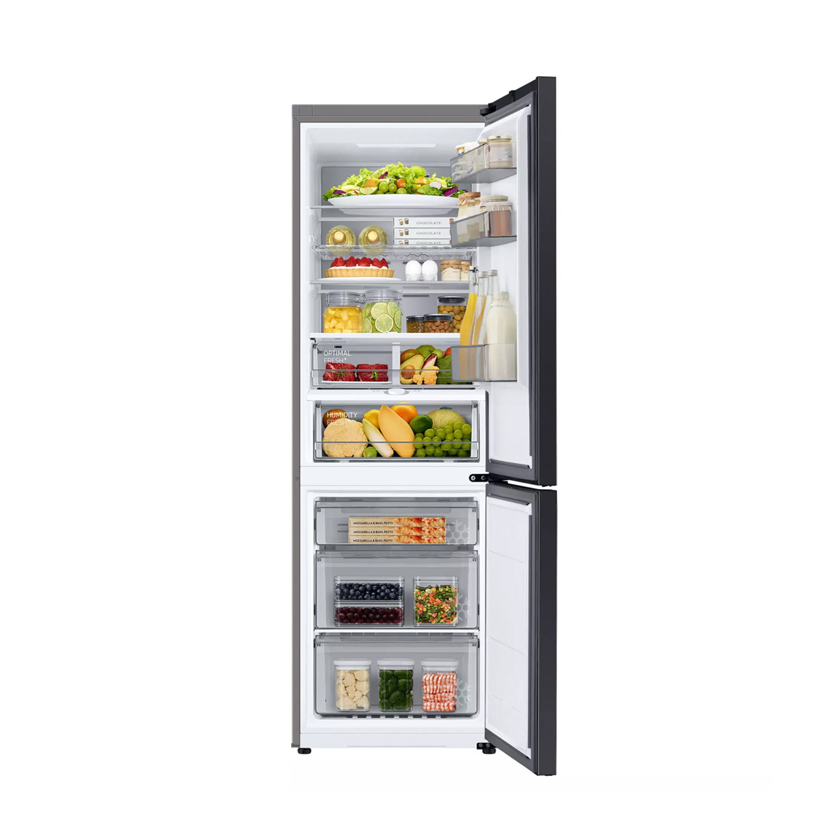Dulje sačuvajte izvornu teksturu, aromu i okus pokvarljive hrane. Vlažnost u Humidity Fresh + ladici možete prilagoditi jednostavnim okretanjem upravljačkoga gumba. Ladica stvara idealno okružje za pohranu najrazličitijeg voća i povrća, tako da ono ostaje hrskavo, svježe i sočno.